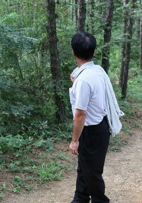 아버지와 아들이 산에 오른다.