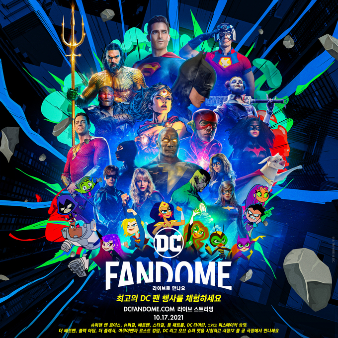 사상 최대 글로벌 가상 팬 이벤트 ‘DC팬돔’이 2021년 10월 17일(일) 새벽 2시, 한층 새롭고 거대한 스트리밍 이벤트로 돌아온다. 전 세계 팬들을 DC 멀티버스로 안내할 이벤트에서는 팬들이 사랑하는 장편 영화, 실사 및 애니메이션 TV 시리즈, 게임, 코믹스, 홈 엔터테인먼트 등의 스타와 창작자들이 함께 자리한다. DC 팬돔 2021 행사는 팬들이 DC 팬돔 히어로의 전당에서 펼쳐지는 한층 더 쉽고 다양한 경로를 통해 접근할 수 있도록 트위치, 유튜브, 페이스북과 트위터에서도 중계된다. DC 팬돔 프로그램에는 아랍어, 브라질 포르투갈어, 중국어, 영어, 불어, 독어, 이탈리아어, 일본어, 한국어, 폴란드어, 러시아어, 스페인어 등을 포함해 다국어 자막이 제공되며 무료 서비스된다. 메인 사이트인 DCFanDome.com 외에도, 트위치, 유튜브, 페이스북, 트위터를 통해서도 시청이 가능하며, 휴대폰, 태블릿, 노트북 컴퓨터나 데스크탑 PC 등 제한 없이 시청할 수 있다.