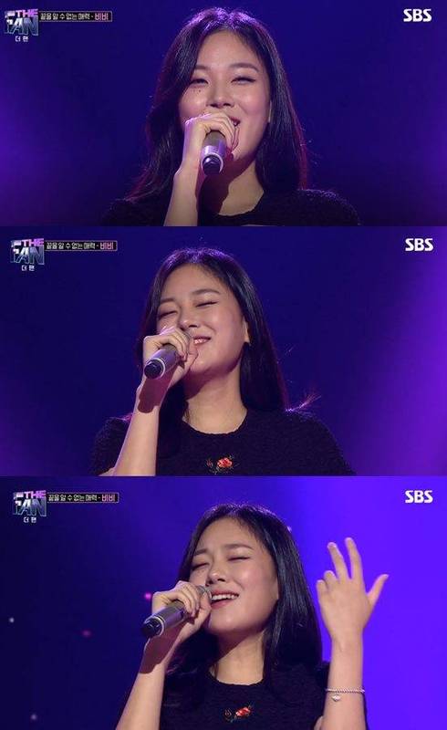 1일 재방송된 '더 팬'에서 비비(김형서)는 완벽한 여유로움과 분위기로 눈길을 끌었다. 현장에 있는 관객들 역시 비비의 음색에 감탄했다.