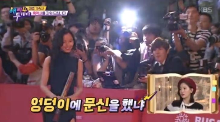 1일 재방송된 KBS2 ‘해피투게더4’에 출연한 강한나는 2013년 부산 국제 영화제의 파격적인 드레스의 주인공이 바로 자신이라고 밝혔다.