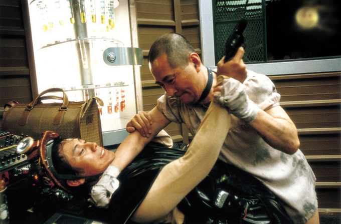 요르고스 란티모스 감독의 <부고니아>는 <지구를 지켜라!>에 비할 바 없이 표백된 세계다. 극의 초반부 인물간 설정과 이를 보여주는 방식에서부터 확인할 수 있는데 우선 <지구를 지켜라!>의 만식의 경우 유제화학의 대표로서 주가조작, 스캔들 등 추악한 민낯을 부끄러움 없이 드러내는 자다. 반면 <부고니아>의 미셸을 소개하는 몽타주에서 영화는 그가 자기 관리에 능하며 보여주기식으로나마 직원 복지에 신경 쓴다는 점을 강조한다. 납치된 이후에도 쉽게 흥분하지 않고 테디, 도니(에이든 델비스)와 대화로 상황을 해결하려 시도하는 리더로서의 면모를 보인다. 만식은 어떠했나. 이런 식의 협박엔 익숙하다는 듯 시종 적대적 태도를 유지하며 병구와의 긴장감을 극대화한다. 그 결과 병구의 지하실은 모욕을 동반한 고문, 욕설, 출처 모를 분비물로 가득한 혼돈의 장소로 변모한다. 병구와 만식이 끝없이 살을 부대끼며 갈등을 심화시킨다면 테디와 미셸은 최후의 순간까지도 물리적 혹은 감정적 거리를 유지한다는 인상이다. 전기고문을 가하긴 하지만 전반적으로 원작에 비해 고문의 수위가 낮아졌으며 미셸을 납치하기 전, 테디와 도니는 스스로 화학적 거세를 감행하고 외계인에게 주도권을 뺏기지 않겠다는 목적으로 정갈하게 정신과 몸을 단련한다. 땀과 피로 얼룩진 습도 높은 병구의 지하실과 달리 테디의 지하실은 미셸과 도니, 테디가 건조하게 서로를 탐색할 배경지가 되어준다. 도니가 겁에 질려 자살하기 전까지는 말이다.