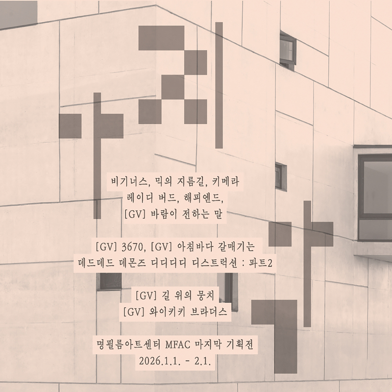 현재 명필름아트센터는 영화로 받은 사랑을 영화로 돌려주는 마지막 기획전을 진행 중이다. 미개봉작 <길위의 뭉치>를 비롯해 <비기 너스><키메라><해피엔드>등 프로그래머와 대표의 추천작까지 총 11편이 2월1일까지 상영된다. 폐관일인 2월1일에는 명필름의 대표작 <와이키키 브라더스>의 상영 및 감독, 배우와의 대화가 진행된다. 공간은 문을 닫으나 명필름의 제작과 교육 사업은 멈추지 않는다. 2026년에도 명필름랩을 통한 신진 영화인 교육과 새로운 프로젝트는 계속된다.