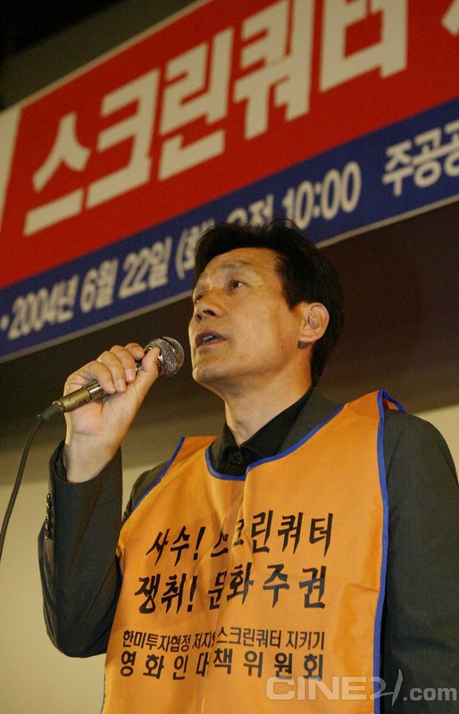 스크린쿼터 사수 범영화인비상대책위원회 공동집행위원장 역임. 정부가 미국과의 투자협정(BIT) 체결을 위해 스크린쿼터 축소를 검토하자 안성기는 영화인들을 결속하며 2006년까지 스크린쿼터 사수(한국영화 의무상영제) 운동에 앞장섰다. 삭발 투쟁, 1인 시위 등에 몸소 나서 강경한 주장을 펼쳤지만 시위 현장에 출동한 전경들에게는 따뜻한 인사를 건넸다는 미담이 회자됐다.