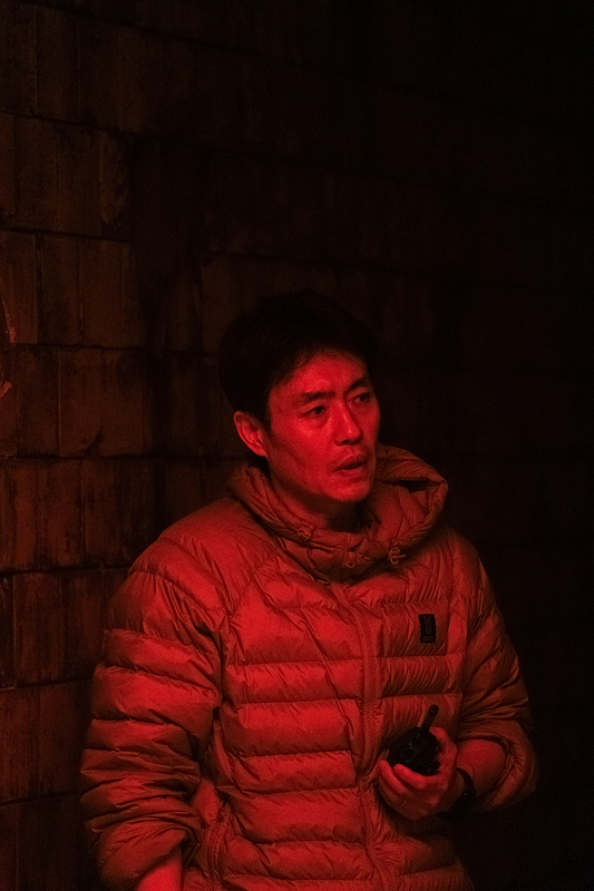 벽에 기대앉은 조인성 배우가 다소 장난기가 묻어나는 표정으로 눈을 맞춘다. 카메라를 든 이가 동료 박정민 배우이기 때문에 나오는 눈빛이 아닐까. 조인성 배우는 국정원 블랙요원인 조 과장 역을, 박정민 배우는 러시아 블라디보스토크에 파견된 북한 보위성 조장 박건을 맡았다. 두 배우는 <밀수>에 이어 또 한차례 류승완 감독과 협업했다. 리가에서 박정민 배우는 필름 카메라, 디지털카메라를 이용해 <휴민트>촬영 현장 곳곳을 촬영했는데, 연출에 집중하고 있는 류승완 감독도 그의 렌즈에 포착됐다. 그가 이번 기획전에 쏟은 공력은 어느 정도일까. 투자배급사 NEW는 “박정민 배우는 사진의 보정부터 작품 배치에 이르기까지 단순히 사진을 제공하는 차원을 넘어 기획전의 준비 과정을 확인하고 의견을 더하며 완성도를 높였다”고 설명했다.