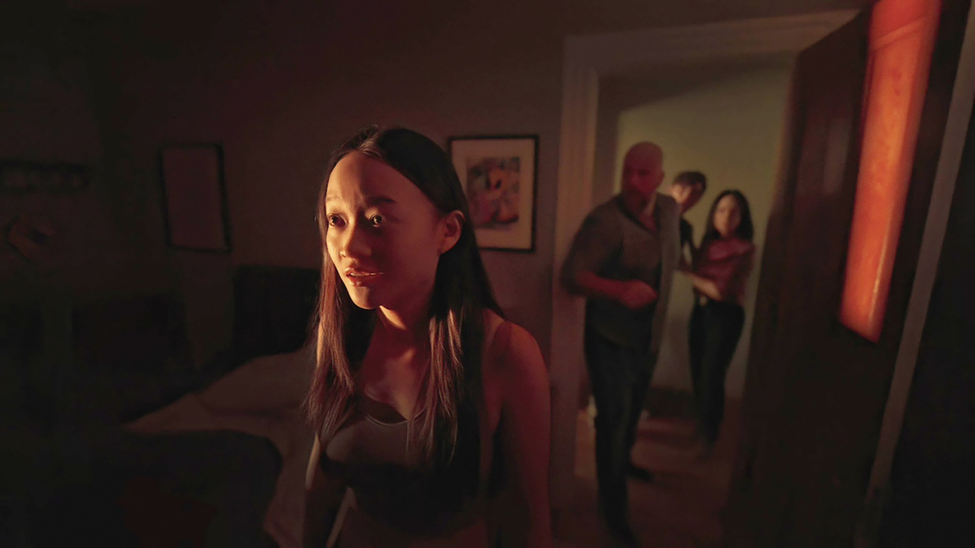 유령은 그들의 대화에만 등장하는 게 아니다. 실체를 과시하며 가정에 영향을 미친다. 리모델링을 마친 집에서 가장 먼저 묘한 기척을 느끼는 건 딸 클로이(칼리나 리앙)다. 이유 모를 사연에 훌쩍이던 그는 잠들기 위해 이불을 덮자마자 다시 몸을 일으킨다. 주위를 둘러보다 옷장 앞으로 걸어간다. 그가 잠자코 장롱을 응시하다가 호명한 이름은 나디아. 그건 얼마 전 세상을 떠난 클로이의 친구다. 이때부터 영화는 관객이 유령을 나디아의 영혼으로, 화면을 나디아의 시점으로 인식하도록 유도한다. 그도 그럴 것이, 카메라는 클로이의 방을 제일 자주 들락거린다. 카메라가 대리하는 존재의 욕망은 클로이를 지켜보는 일이라는 듯이 말이다. 그 목적이 관음, 감시, 보호 중 무엇에 해당하는지는 극의 최후반까지 밝혀지지 않는다. 그로 인한 혼란의 여파로 레베카와 크리스는 크게 다투고, 클로이는 오빠 타일러(에디 매데이)의 친구 라이언(웨스트 멀홀랜드)과 관계 맺으며 상실감을 달랜다