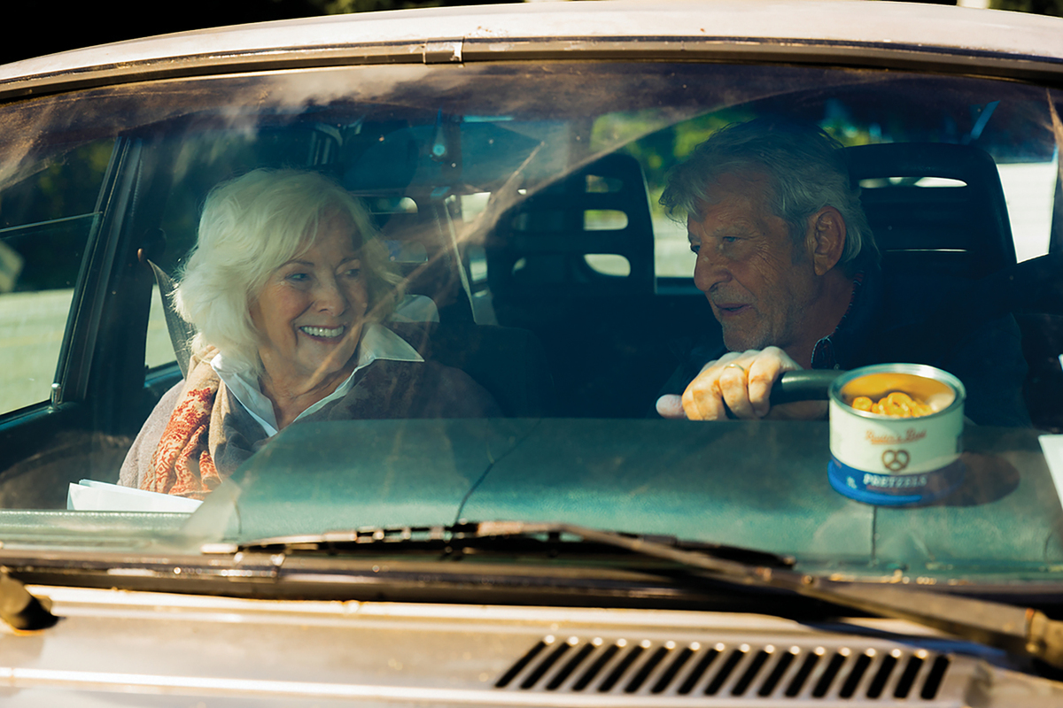 에른스트 루비치를 사랑한 감독은 빌리 와일더만이 아니었다. 프랑수아 트뤼포는 눈에 띄지 않는 잡스러운 대화나 순간들을 쌓아가면서 인물이 진정으로 누구인지를 정의하는 루비치의 서사를 ‘그뤼에르 치즈 이론’으로 일컬었다. 곳곳이 송송 뚫린 치즈의 모양에 빗대어 각각의 구멍이 “윙크를 한다”고도 표현했다. 여기서 구멍이란 거창하게 의미화된 장면은 생략하고 그저 일상적 짜증을 주고받거나 말다툼하는 두 사람의 모습을 보여주는 연출을 의미한다. 이 구멍들은 관객을 공모자로 초대하는 역할을 한다. 말하자면 틈새, 무의미함, 불완전함을 노출함으로써 인물들의 관계를 대체 불가능한 원본으로 만드는 세련된 방법론이다. <영원>은 오프닝부터 출산을 앞둔 손주 부부의 성별 공개 파티에 향하는 조앤과 래리의 속 좁은 논쟁을 가만히 지켜본다. 젊은이들에 대한 시답잖은 불만, 휴양지를 산과 바다 중 어디로 결정할지 같은 문제가 노부부의 짜증 섞인 칼칼한 목소리를 타고 흐른다.