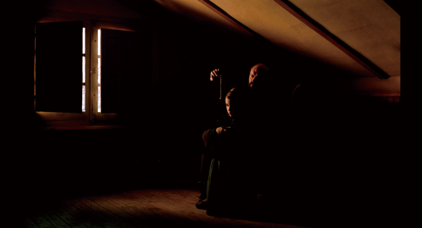 <남쪽>에서 어둠은 단순한 ‘없음’의 표현이나 빛을 받는 인물을 강조하기 위한 배경이 아니다. 이 영화에서 어둠은 기억이 묻어 있는 잠재된 공간, 잊힌 시간의 층위다. 투쟁과 저항의 역사는 긴 시간 억압되어 어둠 속으로 침잠해 들어갔다. 아구스틴은 북쪽에서 그 기억들을 망각하지 않기 위해 스스로 어둠 속에 머문다. 그에게 추는 수맥을 탐지하는 물리적 도구이면서, 스페인의 현대사를 어둠 속에서 끌어올리는 매개이기도 하다. 다락방 안에서 그는 딸에게 사라진 것들의 위치와 깊이를 알아내는 법을 가르쳐주는 것이다. 이 장면에서 카메라는 아주 천천히 움직인다. 카메라의 움직임이 인지되려면 배경이 드러나 있어야 한다. 배경은 카메라의 이동을 가늠하게 하는 상대적 기준점이기 때문이다. 따라서 어두운 배경에서의 움직임은 그 자체로 감지하기 어려운, 비효율적인 무빙이 된다. 그런데 <남쪽>에서는 이 어둠 속에서 카메라가 부드럽고 정교하게 움직인다. 카메라는 보이지 않는 것들을 감지하듯, 마치 손끝으로 더듬듯 어둠의 세계를 쓰다듬는다. 이때 부녀에게 닿는 옐로 빛은 <벌집의 정령>에서와 같은 빛이 아니다. <남쪽>에서 옐로는 어둠과 함께 잊혀가던 것들을 다시 수면 위로 끌어올리는 ‘해결되지 않은 과거의 유령’이다. 억압의 시대를 통과하며 남은 내면의 화상은 지워지지 않고 노랗게 곪은 채로 남아 있다.
