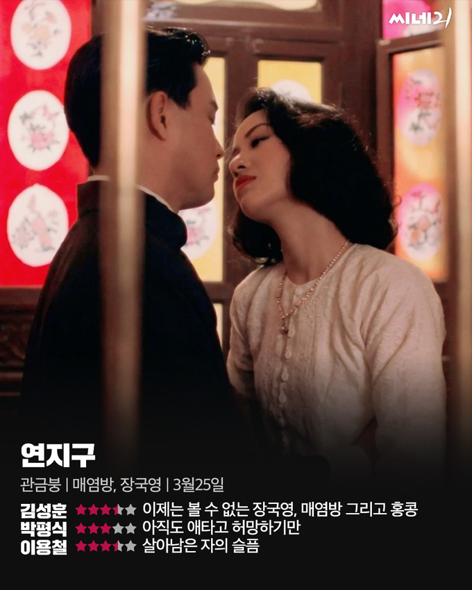 1934년의 홍콩, 기생 여화(매염방)와 부잣집 도련님 진진방(장국영)이 사랑에 빠진다. 속절없이 서로를 탐미하던 둘은 이내 신분 차이라는 현실의 제약에 가로막힌다. 진진방이 가문을 등지고 가극 배우로 살며 연을 이어가려고도 하지만, 결국 두 사람은 함께 이승을 떠나기로 마음먹는다. 1987년의 홍콩, 어느 신문사에서 일하던 원영정(만자량)에게 귀신이 된 여화가 찾아온다. 50년 넘게 기다리던 진진방을 직접 찾기 위해 이승에 돌아온 것이다. 다소 통속적인 멜로드라마의 줄거리지만, 과감한 클로즈업의 활용과 살결의 부딪힘을 통한 시각적 관능미가 이야기에 앞선다. 사랑의 신화를 비트는 후반부의 반전으로도 유명하다. 무엇보다도 홍콩영화 황금기의 얼굴이자 친우였던 장국영과 매염방의 화양연화로 널리 각인된 작품이다. 4K 리마스터링으로 국내 최초 개봉한다.