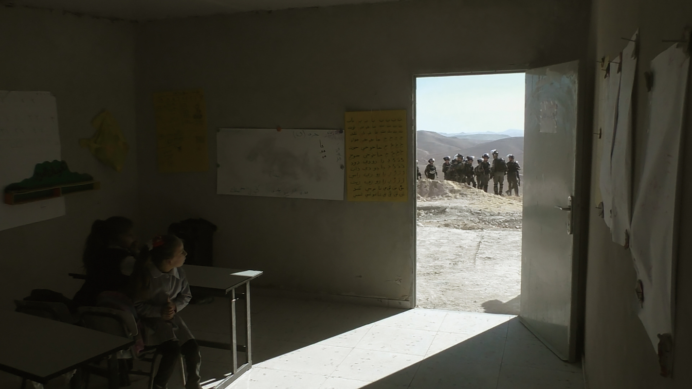 한편의 다큐멘터리가 ‘있는 그대로’의 현실이라고 믿는 사람은 이제 없을 것이다. 당연한 말이지만, 그것은 현실에서 선택된 파편들의 배열, 그러니까 현실이 아니라 그에 대한 리액션의 지평이다. ‘있는 그대로’는 다큐멘터리가 추구하는 방향성과 지키려는 가치일 수는 있어도 성취할 수 있는 고정된 목적지일 수는 없다. 후자를 확신하는 영화를 우리는 신뢰하기 어렵다. 특정 다큐멘터리가 세계에 대한 최선의 정당하고 진실한 리액션이라고 주장할 수는 있지만, 객관적 리액션이라고 강변할 수 없는 것처럼 말이다. ‘이것이 팔레스타인 민중들의 진짜 삶’이라고 호소하는 두 영화도 마찬가지다. 감독들이 마사페르 야타에서 겪은 4년을 92분으로 응축해 편집한 <노 어더 랜드>나 힌드 라잡의 신고 전화를 받은 적신월사 내부의 반응을 픽션으로 구축한 <힌드의 목소리>는 순간의 뉴스 정보가 아니라 화법과 태도와 파급력을 고심한 동시대 개별 ‘영화’로서 우리 앞에 현전한다. 더없이 급박한 현실 한가운데에서 이들이 자신의 몸체에 새긴 영화의 불가능성과 가능성에 대해, 영화와 세상 사이에서 분투하는 방식에 관해 먼저 응답할 필요를 느낀다.