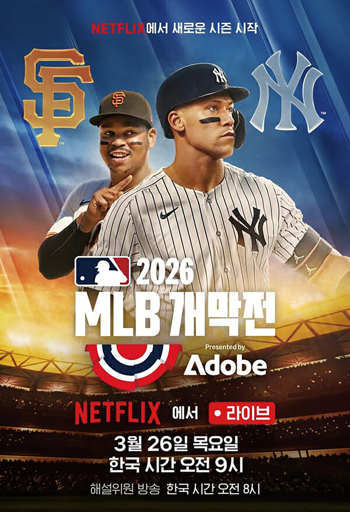 넷플릭스가 오는 3월26일(목) 오전 9시, 샌프란시스코 오라클 파크에서 열리는 뉴욕 양키스 대 샌프란시스코 자이언츠의 2026 MLB 개막전 생중계에 나선다. 이번 중계는 최근 과 WWE(미국 프로레슬링) 중계 등으로 라이브 스트리밍의 가능성을 증명한 넷플릭스가 MLB(미국 프로야구 메이저리그) 네트워크 제작팀과 협력해 제작한다. 배리 본즈, 앨버트 푸홀스 등 MLB 전설들이 글로벌 넷플릭스의 해설진으로 참여하며, 한국어 중계진으로는 오승환 해설위원과 김명정 캐스터가 합류한다.