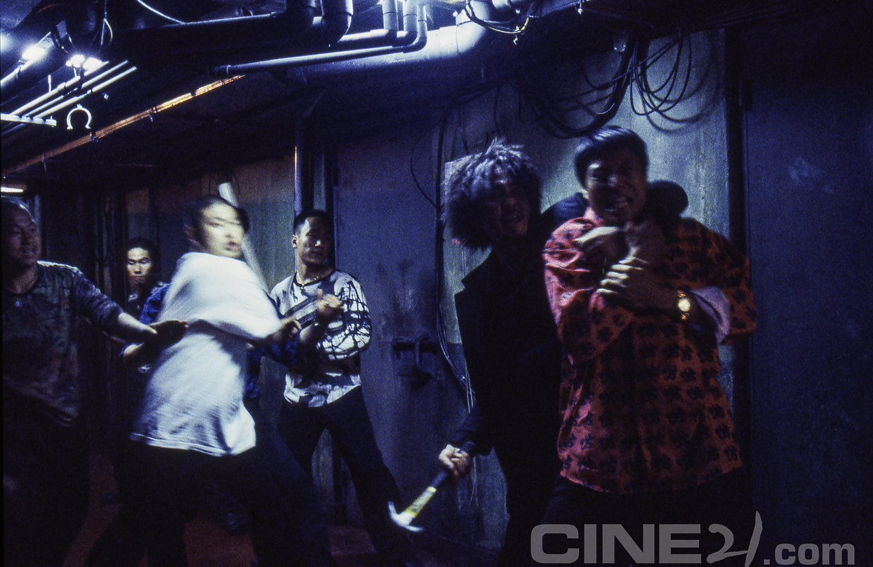 오대수(최민식)가 자신이 갇혔던 감방을 찾아가 장도리 하나로 10여명의 건달을 물리치는, 그 유명한 ‘장도리 신’을 촬영하고 있다.
