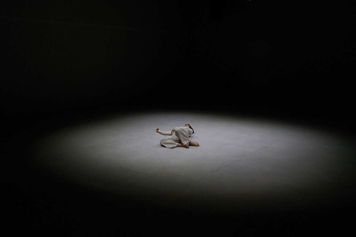 둥그렇게 둘러앉은 관객들 한가운데서 이윤정이 숨을 쉰다. 폐로 갈비뼈로 등으로 겨드랑이로 골반으로 허벅지로 오금으로 발바닥으로, 숨을 끝까지 들이마시고 바닥까지 내뱉는다. 호흡에 따라 작게 들렸다 떨어졌다 하던 몸은 점점 흔들리고 휘어지더니 때로는 호흡이라는 행위를 하는 몸이라 믿기지 않을 정도로 한계를 넘어 변형된다. 고통스러울 만큼 몸 안 구석구석을 밑바닥까지 깡그리 훑어낸 날숨이 길게 이어진다. 반대로 들숨은 공간 구석구석 관객들의 신체 구석구석을 가차 없이 있는 힘껏 빨아들인다. 말 그대로 몸 안으로 밀물처럼 밀려드는 들숨이 목구멍을 통과하며 진동하더니 진동은 곧 미세한 소리가 되고 반복될수록 짐승의 신음처럼 짙어진다. 썰물 같은 날숨과 밀물 같은 들숨으로 넘실대는 호흡이 거듭된다. 서울시립 서서울미술관 개관 특별전_SeMA 퍼포먼스 <호흡>(3월12일~4월12일)의 일환으로 공연된 이윤정 안무가의 <나는 여기에서 모든 것을 숨쉰다>이다.