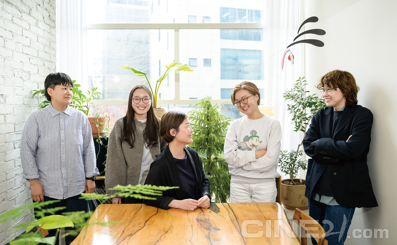 <생명의 은인> <세계의 주인> <양양> <홍이> <3학년 2학기>…. 지난해 개봉한 이 영화들에는 여성이 연출했다는 공통점이 있다. 그리고 그 감독들은 모두 여성감독네트워크(Women Directors’ Network, WDN) 회원이다. 나이, 경력, 장르는 달라도 여성으로서 영화를 만든다는 정체성 하나로 손을 맞잡은 인원이 어느덧 218명에 달한다. 2023년 첫 회동 이래 매해 10명이 넘는 운영진이 끈끈한 거미줄을 짜낸 결과다. 짧아도 두터운 여성감독네트워크의 역사를 <씨네21>에 기록하기 위해 초기 운영진인 박소현, 부지영, 유혜민 감독과 현 운영진인 이채민, 한세하 감독이 한 테이블에 둘러앉았다.