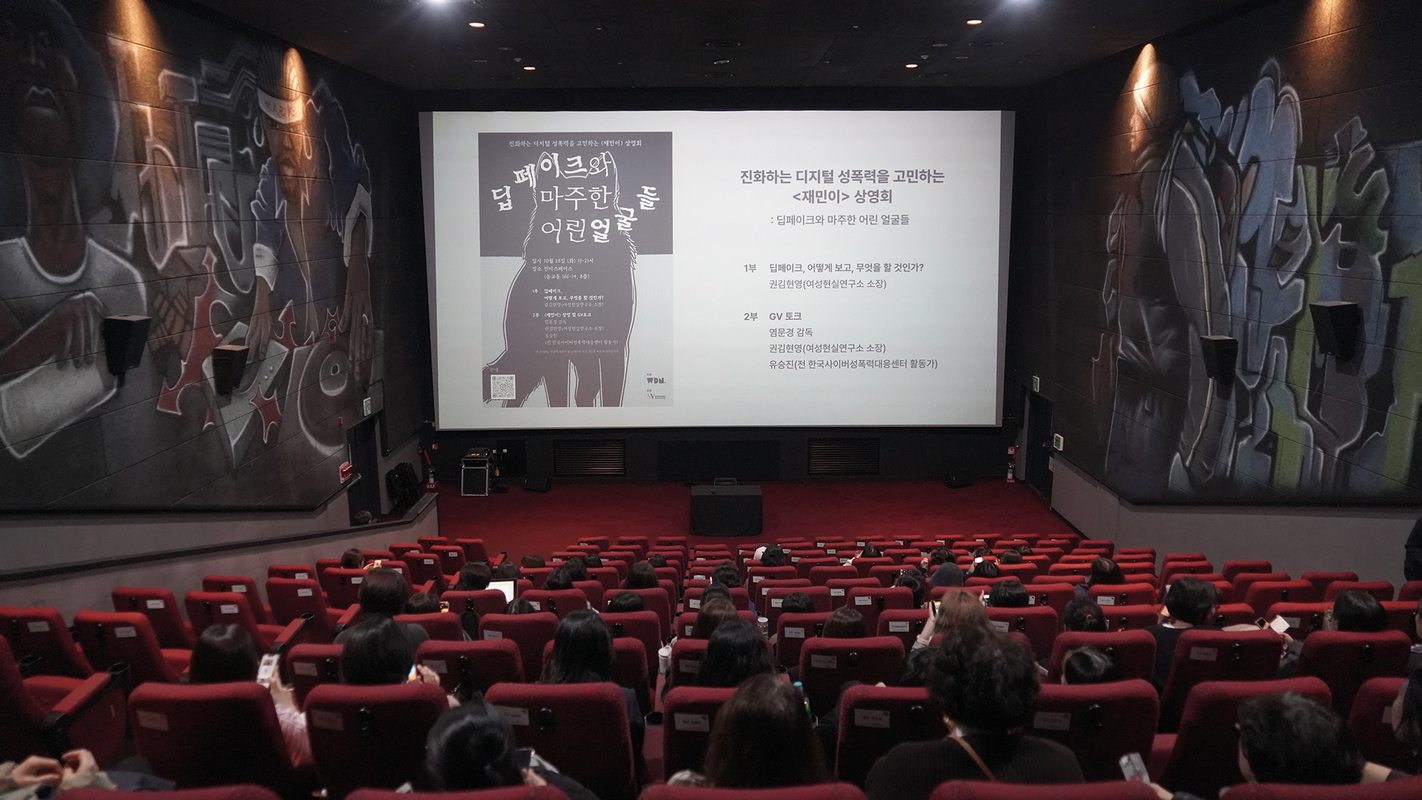 여성감독네트워크 차원에서 제작한 첫 단편 <재민이>는 2025년 한국여성재단 성평등사회조성사업의 지원을 받은 프로젝트다. 여성감독네트워크는 딥페이크로 인한 피해를 탐구하는 작품을 만들기 위해 소속 감독을 대상으로 기획안을 공모했다. 그렇게 선정된 염문경 감독의 <재민이>는 청소년을 동물로 형상화해 딥페이크 범죄의 가해자이자 피해자가 된 소년 재민을 스크린에 불러들였다. 쌍둥이를 뜻하는 라틴어이자 어느 인공지능 모델 명칭이기도 한 ‘제미나이’를 변형한 이름을 가진 재민은 여우 청소년이지만, 영화가 끌어오는 건 체로키족의 두 늑대 설화다. 두 마리 늑대가 싸울 때 이기는 쪽은 ‘먹이를 주는 쪽’이라는 이야기 말이다. 동급생 토끼의 얼굴을 합성하고 낄낄거린 재민과 유튜버 도마뱀에게 극우 아이콘으로 조작당한 재민은 같은 인물이지만, 그 자신도 어느 쪽에 먹이를 줘야 할지 혼란스럽다. 이를 반영한 배경에는 생성형 AI가 뱉어낸 이미지가 넘실거린다. 그 위에서 재민의 부모도 입장을 달리한다. 아이의 심리에 집중한 애니메이션인 만큼 ‘나도 타깃이 될 수 있다’는 메시지가 명확하다. 그로부터 딥페이크 범죄를 예방하는 단초를 찾으려는 <재민이>는 지난해 텀블벅 후원자를 위한 상영회 및 포럼, 여성감독네트워크영화제 등에서 공개되었다.