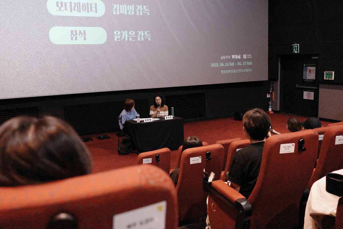 한편 2025년부터 상영회팀 팀장을 맡고 있는 이채민 감독은 지난해 인디스페이스에서 WDN영화제 ‘비연대기적 여성의 움직임’을 개최한 데 이어 부산국제영화제의 커뮤니티 비프(BIFF)에서도 흐름을 이어갔다. 올해는 여성의 날을 맞아 3월 한달간 정동진의 영화관 서점 이스트 씨네에서 네트워크 소속 감독들의 작품을 트는 기획전을 실시했다. 그들의 개봉작을 홍보하는 것도 네트워크의 역할. 회원관리팀장인 한세하 감독은 “꼭 개봉 첫주에 응원 번개를 하려고 한다”며 올해도 조현진 감독의 <매드 댄스 오피스>개봉 첫날 회원들과 영화를 관람했다고 한다. 김효은 감독의 <새벽의 Tango>, 서은선 감독의 <훈련사>, 염문경 감독의 <지구 최후의 여자>, 이성민 감독의 <콘크리트 녹색섬>등 다가올 개봉작도 여성감독네트워크의 벼락같은 환대를 기다리고 있다. 한세하 감독은 응원 번개, 주민 파티, 그리고 총회까지 서울 외 지역에 있는 회원들도 활발하게 모일 방안을 계속 구상 중이라고도 밝혔다.