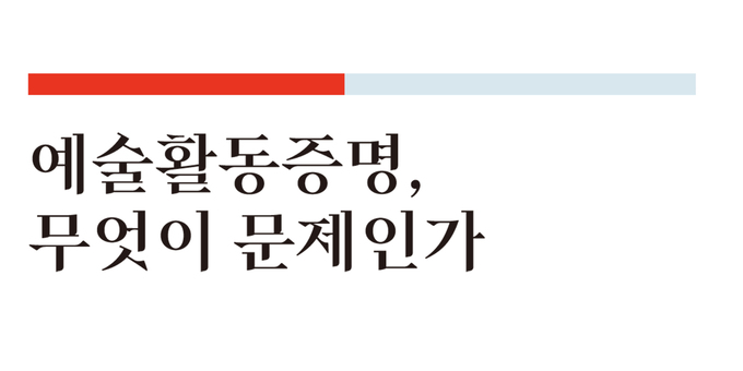 예술인복지법은 2011년 생활고와 지병에 시달리던 최고은 작가가 사망한 사건으로 촉발되어, 배고픔으로 죽는 예술인이 없어야 한다는 취지로 만들어진 법안이다. 이 법은 국가와 지방단체들이 예술인의 지위와 권리를 보호하고 그들을 위한 복지를 증진하도록 명시하고 있다. 그리고 예술활동증명은 바로 그 예술인복지법의 보호를 받기 위한 일종의 문과 같은 역할을 하고 있다. 예술활동증명을 받은 뒤에야 연 300만원 지급되는 예술활동준비금지원사업에 지원할 수 있고, 예술인 산재보험, 예술인 국민연금 등 사회보험 납부금에 대한 지원을 받을 수 있다. 문제는 현재 예술가를 위한 복지의 문이 너무 좁아 보인다는 사실이다.