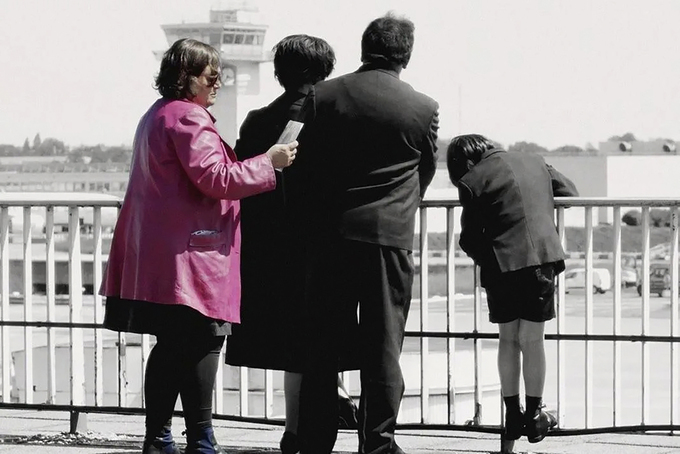 고독한 작가 크리스 마커의 작품이자 누벨바그 시대의 SF, 한 장면을 제외하곤 전부 사진으로만 이뤄진 영화 <환송대>(1962). 도미니크 카브레라 감독은 이 작품의 다섯 번째 장면을 보고선 위화감에 휩싸였다. 의도치 않게 찍힌 일반 군중의 이미지도 포함된 작품에서 부부와 아이의 뒷모습을 담은 문제의 사진 속 주인공이 아무래도 자신의 사촌인 듯해서다. 묘한 호기심은 집요함으로 번져 작품은 가족 찾기에서 출발한 후 사진과 영화의 존재론으로까지 나아간다. 과거 흑백사진이 품은 수수께끼의 힘은 최첨단의 다양한 시각 장치들로 넘쳐흐르는 현재도 해결하지 못할 난공불락의 요새 같다. 비밀 해제에 참여하는 사람이 감독의 사촌뿐 아니라 과거 <환송대>의 제작진과 주변 인물로까지 늘어나면서 작품은 뜻하지 않게 인물 연구, 이민자 인류학, 역사 탐구의 면모도 갖춘다. 1962년작 <환송대>가 지닌 시간과 기억, 사진과 영화의 역학이 작품 안팎을 통과하며 더욱 증폭되고 마침내 드러난 진실은 감동을 선사한다. /김성찬