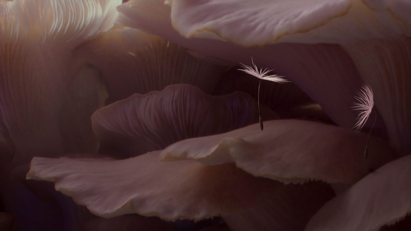 한 송이 민들레에서 비롯된 씨앗 무리가 핵폭발로 파괴된 지구를 탈출한다. 우주를 떠돌던 최후의 씨앗 넷은 어느 행성에 도착해 뿌리내릴 곳을 찾아 헤맨다. 지구와 흡사한 미지의 땅을 모험하며 씨앗들은 생소한 위협과 뜻밖의 도움을 만난다. 3D애니메이션과 타임랩스 사진을 섞어 작업했다는 <민들레 오디세이>의 중심에는 연주곡과 함께 흐르는 모험 서사가 있다. 효과음과 몸짓 언어로 소통하는 네 씨앗 캐릭터의 움직임은 인간을 닮아 있다. 그 사이로 모모코 세토 감독은 싹의 성장이나 알의 부화, 비 맞은 잎의 떨림, 민달팽이들의 교감 등 인간의 시야가 닿지 않는 곳의 이야기를 공들여 묘사한다. 식물이 시들고 곰팡이가 자라는 과정을 찍거나 기후변화를 인식하는 SF 이미지를 담았던 감독의 실험 단편들과 연결성이 보인다. 우주 풍경과 민들레를 겹쳐보며 시작하는 <민들레 오디세이>는 무수한 생명들에게 저마다의 세계가 있다고 말하는 듯하다. /김연우