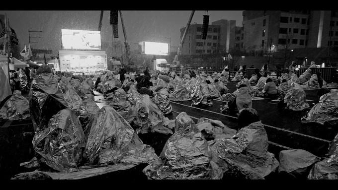 이명세 감독이 12·3 비상계엄을 소재로 다큐멘터리영화를 연출한다, 는 소식을 들었을 때 귀를 의심했다. 한국 사회가 정치적 격동기를 지나고 있던 1980년대 말에 등장했으나 당대의 지배 경향에 아랑곳하지 않는 독자 노선으로 ‘유치찬란한 멜로영화를 만드는 감독’, ‘역사의식을 망각한 악질 스타일리스트’로 매도당했던 그 이명세 아닌가. 40년 후 시류에 타협하지 않는 이 장인 예술가의 세계관이 돌연 방향을 선회한 것인가. ‘이명세의 시네마틱 다큐멘터리’, ‘인터뷰, 내레이션이 하나도 안 나오는 놀라운 다큐멘터리영화’라는 마케팅의 수사보다 기록과 보존을 본령으로 하는 다큐멘터리 형식이 이명세의 작가적 특질과 만나는 지점이 궁금해졌다.