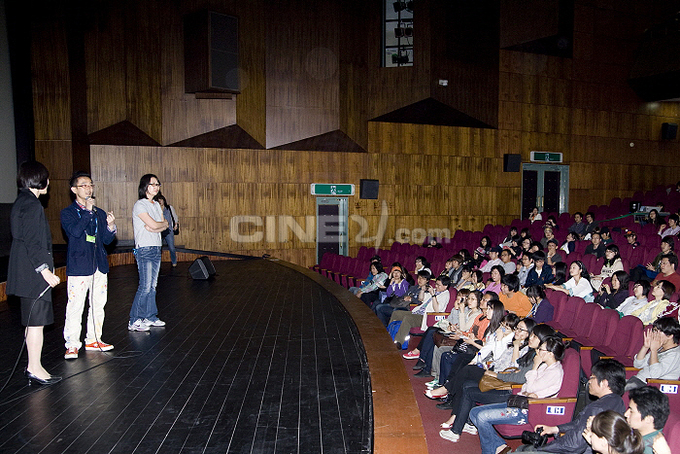 일찌감치 표가 매진될 만큼 인기 있는 영화이기 때문일까. 객석의 반응은 뜨거웠는데, 역시 가장 먼저 나온 질문은 자연스러워서 더욱 인상적이었던 아이들의 연기에 대한 것이었다. “26명의 반 학생 전원에게 일정한 캐릭터를 부여했는지, 아니면 기본적인 설정만 정해놓고 자율에 맡겼는지”를 묻는 질문에, 마에다 감독은 “감사합니다”라는 한국어로 입을 열었다. “26명 모두를 주인공으로 하고 싶었다. 오디션에서 1300명의 아이들과 만났다. 두 달 반에 걸쳐 26명을 선택했고, 네 달여 동안 리허설을 했다. 캐릭터를 잘 살리기 위해 대본이 비어있는 상태에서 연기하게 했다. 촬영하면서 11마리의 돼지를 동원했는데, 아이들이 직접 그들을 돌봤다. 영화에 나오는 의견은 전부 아이들 본인의 의견이다.”