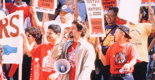 ■ Story 멕시코에서 미국 로스앤젤레스로 밀입국해 들어온 마야(파일러 파딜라)는 언니 로사(엘피디아 카릴로)가 일하는 청소 용역회사에 취직한다. 중간관리자는 밀입국자인 마야를 취직시켜준 반대급부로 한달치 급료를 가로채간다. 청소부의 대다수가 남미 밀입국자인 이 회사의 근로조건은 열악하기 그지없다. 늦게 출근했다고 그 자리에서 해고해버리고, 동료 청소부를 밀고하도록 꼬드긴 뒤 거부하면 또 잘라버린다. 마야가 취직한 지 석달쯤 지나 노동운동가 샘(에이드리언 브로디)이 이 용역회사의 청소부 명단을 훔치러 들어온다. 경비원에게 들켜 쫓기는 샘을, 마야는 대형 쓰레기통 안에 숨겨준다. 다음날 샘이 마야와 로사 식구의 집에 찾아와 청소부들이 단결해 싸워야 한다고 선동한다. ■ Review 켄 로치라는 이름은, 그 자체로 하나의 수사가 됐다. 소련이 해체되고, 거대담론이 무너지고, 노동계급의 연대의식이 아스라해진 90년대에도 줄기차게 계급적 관점을 지키면서 억압받는 약자들의 투쟁을 영화로 만들어왔다. 고지식함, 비타협적인 태도, 좀더 나쁘게 시대착오적이라는 의미로 ‘켄 로치적’이라는 말을 어디선가 쓰고 있을지도 모른다. 실제로 텔레비전 드라마에서 쌓았던 그의 대중적 인기는 필모그래피가 쌓여갈수록 줄어들어 이제는 칸, 베니스, 베를린 등 세계 3대 영화제만이 켄 로치 영화의 고객으로 남다시피 했으니 말이다. 세기가 바뀐 2000년에 그가 내놓은 영화는 제목부터 <빵과 장미>이다. ‘빵’은 생존권, ‘장미’는 단순히 먹고사는 것에 더해 인간이 누리려 하는 여유와 풍요를 의미함은 미뤄 짐작하기 어렵지 않다. 반세기 전에 브레히트는 “지금 장미의 아름다움을 말하는 것은, 그 밖의 모든 억압과 불의에 대해 침묵하는 것을 의미한다”고 말했다. 이 영화에서 켄 로치는 “우리는 빵뿐 아니라 장미도 원한다”고 외친다. 나치 파시즘의 만행이 코앞에서 저질러지던 그때와, 지금 세계화 시대의 풍요를 염두에 둔다면 두 말 사이에는 본질적인 차이가 없다. <빵과 장미>처럼 ‘켄 로치적’인 제목이 있을까. 직설적인 제목에 걸맞게 영화의 주인공들은 풍요의 상징인 미국, 그중에서도 최고소득의 변호사와 펀드매니저가 모여 있는 LA 고층 건물에서 이들과 정반대로 열악하게 살아가는 청소부들이다. 마야의 집에 찾아온 샘이 말한다. “82년 청소부의 시간당 임금은 8.5달러였고 의료보험, 치과보험 모두 가입이 됐다. 99년 청소부의 시간당 임금은 5.75달러에 아무런 보험혜택도 없다. 그 강도 같은 놈들은 미국의 최빈곤층에게서 20년 동안 수천억원을 가로채갔다.” 게다가 이들 중 상당수가 밀입국자여서 노조도 만들지 못한다. 로사는 남편이 당뇨병으로 고생하는데도 보험혜택을 받지 못하고, 동생 마야를 취직시키기 위해 중간관리자에게 몸까지 내준다. 중간관리자는 그래놓고도 마야의 첫 월급을 가로채간다. 이 영화에서 ‘장미’는 사치스러운 게 아니다. <레이닝 스톤>에서 딸의 성찬식 예복을 사주기 위해 고군분투하는 아버지와 마찬가지로, 이 청소부들이 얻고자 하는 건 인간으로서의 자존심이다. 이들이 샘의 도움 속에 사주와 맞서 싸워 소득을 얻어내는 과정을 시간순으로 쫓아가는 <빵과 장미>는 줄거리만 요약해놓고 보면 도식적이다. 그러나 늘 그렇듯 켄 로치 영화에서 줄거리를 위해 캐릭터가 소외되는 일은 드물다. 켄 로치와 단짝이 된 폴 래버티가 6년 동안 실제 LA 청소부들의 운동에 동참하며 애쓴 덕택에 영화의 인물들은 남미 특유의 낙천성과 거기에서 오는 힘을 놓치지 않는다. 시위하다 체포돼 끌려간 경찰서에서 이들은 에밀리아노 사파타, 판초 비야 주니어 등 남미 혁명지도자들의 이름을 대며 낄낄댄다. 로맨스와 유머도 중요한 장치로 기능한다. 노동운동가 샘이 강연 도중 마야의 유혹을 받고 섹스하는 장면은, 얼핏 민중영웅의 투사적 이미지 안에 갇히기 쉬운 샘에게 인간의 부드러움과 세속성을 불어넣는다. 변호사 사무실 합병 축하파티장에 청소부들이 몰려들어가 한판 시위를 하고 나오는 대목에선 베니치오 델 토로, 팀 로스 같은 스타들이 파티장의 게스트로 출연해 예상밖의 재미를 선사한다. 아울러 이 유명인사들 사이에 보이지 않게 존재하는 청소부라는 직업의 특성이 선명하게 부각된다. 한 청소부가 말한다. “우리가 유니폼을 입는 건, 다른 사람들에게 보이지 않도록 하기 위해서야.” 그러나 <빵과 장미>를 도식적으로 보이지 않게 하는 건 무엇보다 켄 로치의 세계관이다. 그는 분명 비타협적인 원칙주의자이지만 관념적인 과격함이 없다. 일거에 승리하기를 바라는 욕심이 없다. 이 영화에서 청소부들은 임금인상을 쟁취하지만, 마야는 멕시코로 추방된다. 그래도 마야는 자존심과 명분을 얻고 간다. 자존심과 명분을 잃지 않고 살아가는 것, 켄 로치가 말하는 희망은 거기까지다. 딱 거기까지만 얘기하고 영화를 마무리할 수 있다는 건, 얼핏 쉬워 보이지만 웬만한 경륜과 자신감이 아니면 못하는 일이다. <빵과 장미>의 촬영이 끝난 지 얼마 안 돼, 실제로 LA의 청소부들은 거리시위에 나가 3년간 25%의 임금인상을 얻어냈고