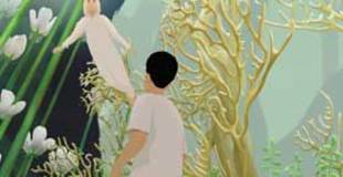 문득, 꿈을 꿀 때가 있다. 맑은 물이 흐른다거나 유난히 깨끗한 숲에 들어간다거나, 혹은 거기서 ‘꿈에서나 만날 법한’ 아름다운 이를 만나는 꿈. 그런 기억 하나쯤 있다면 어른이 된 뒤의 빛 안 드는 지하철역도 그리 텁텁지만은 않을 것이다. <마리이야기>는 어촌에서 어린 시절을 보낸, 이젠 어른이 된 한 남자(아이) ‘남우’의 그런 오래 전 꿈 이야기다. 서울 도심에서 시작해 작은 바닷가마을로, 소년의 환상세계로, 그리고 다시 지금 우리가 살고 있는 이곳으로 돌아오는 <마리이야기>가 두어달 뒤면 세상에 나온다. 기대를 한몸에 받고 있는 이 작품의 실체가 궁금해 작업실로 찾아가 미리 들여다보았다.