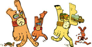 단편 애니메이션을 찾을 때는 전혀 예상할 수 없는 쪽도 한번 눈여겨봐야 한다. 제목만 보면 아이들의 그림 그리기 교재 같은 <우리가 다시 그려요>도 그런 점에서 ‘숨은 보석’과 같은 비디오이다. 원래 이 비디오는 어린이를 위한 교육용으로 제작한 것이다. 2개로 구성된 비디오에 각각 6편씩, 12편의 단편 애니메이션이 수록돼 있다. 이름만 본다면 활발한 활동을 하고 있는 중견 작가 폴 드리센을 비롯해 재닛 펄만, 브제니슬라브 포아르 등의 작품 중에서 어린이들과 삶과 사회의 다양한 의미에 대해 이야기를 나눌 수 있는 것들로 골랐다. ‘하늘의 제왕’, ‘너만 먹니?’, ‘행복했던 가족’, ‘존 베일리의 불장난’, ‘도둑맞은 꿈’, ‘5분 남으셨습니다’, ‘제발 그만’, ‘맛있게 드세요’, ‘파블로프의 쥐’ 등 단편집에 수록된 작품들은 토론용으로 선정돼 주제가 선명하다. 삶의 의미를 묻는 작품에서 사회에서 언론이 가진 기능, 인간의 사회성, 생존의 의미, 흡연 등 다양한 주제를 담고 있다.