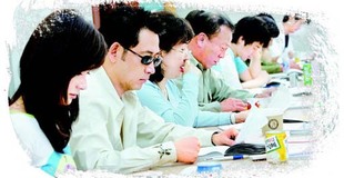 지난 21일 오전 10시, 문화방송의 새 주말드라마 <사랑찬가>팀의 대본리딩 현장을 찾았다. <사랑찬가>는 가난하지만 밝은 에너지의 여주인공 순진(장서희)의 사랑과 성공을 그린 드라마로, 시청자들에게 ‘활기를 불어넣는다’는 기획의도로 만들어졌다. <떨리는 가슴>, <한강수타령>, 그리고 이에 앞선 문화방송의 ‘여러’ 주말드라마들의 ‘천적’이었던 저조한 시청률을 깨려는 야심작이다. “짜증나”를 연발하면서도 꼬박꼬박 챙겨봤던 <인어아가씨> 장서희, ‘기자준비 그만두고 한의학과나 가?’ 하는 상상을 하게 한 <허준> 전광렬을 만날 수 있는 기회! 두근두근 용춤을 추는 심장을 다스리며 서울 여의도 문화방송 사옥 3층 대본연습실 문을 열어젖혔다. 한눈에 ‘서열’ 알수있는 좌석배치 ‘헉!’ 숨막힐 정도로 무거운 연습실 분위기 탓에 목구멍까지 널뛰던 심장이 순식간에 자리를 되찾았다. 테이블과 의자가 꽉 들어찬 5평 남짓한 공간은 열악한 회의실을 연상시켰다. 테이블 정중앙 상석에는 연출을 맡은 조중현 피디가 앉아 있었다. 작가는 조 피디의 왼쪽 옆, 조연출은 오른쪽 옆에 자리를 잡았다. 연출자 양 옆 좌석에 두 주연배우와 조연배우가, 또 그 옆에는 중견배우들이 나란히 앉았고, 테이블에 끼지도 못한 보조 의자는 단역배우 4명의 몫이었다. 한눈에 봐도 맡은 역할의 비중과 서열을 알 수 있는 좌석배치였다. 장서희는 리딩에 앞서 주홍색 필통에서 꺼낸 주홍형광펜을 꺼내들고 눈으로 대본을 읽어내려갔다. 나란히 앉은 전광렬은 4색 볼펜으로 대본에 밑줄을 그었다. 두 주연 배우는 물론, 박근형·임현식·정혜선 등 원로급 무게를 지닌 중견배우들과 임지은·김민·김지훈·이승민 등 젊은 배우들은 하나 같이 브리핑 직전 초치기에 몰두하는 회사원 같았다. 스타다운 거드름은 명함도 못 내밀 분위기. 리딩 현장 분위기를 좌우하는 요소는 여러가지다. 20분전에 대본…‘초치기’ 긴장감 연출자나 출연진 등 멤버가 어떻게 짜이느냐에 더해 대본의 만족도, 시청률도 영향을 끼친다고 한다. <사랑찬가>는 과묵한 연출자와 ‘선생님급’ 중견연기자들의 대거 출연으로 분위기가 엄숙해진 경우. 대본 리딩은 말 그대로 ‘대본을 읽는 것’이다. ‘선수’들은 이 과정을 ‘대본을 맞춰본다’는 말로 표현하기도 한다. 영화나 연극과 마찬가지로 텔레비전 드라마에서도 대본 리딩은 공식적인 연습의 시작이다. 연기자들은 대본 리딩을 통해 다른 출연진들과 처음으로 연기 호흡을 맞춰보고, 연기의 톤을 조절한다. 또 연출과 작가는 이 과정에서 발음과 속도 등 배우들의 연기를 교정할 뿐만 아니라, 대본의 문제점을 찾아내 촬영 전 이를 수정하기도 한다. 1시간 남짓 동안 1번만 까르르 “시작하죠.” 10시21분, 연출을 맡은 조중현 피디가 입을 열자 7, 8회의 대본리딩이 시작됐다. “순진(장서희)이 밀고 오는 전채 요리가 올려져 있는 수레…” 조 피디가 첫번째 장면의 상황설명을 읽고 난 뒤, 동파(박근형)과 새한(전광렬)의 대사가 이어진다. 리딩 시작 직전에 대본이 나오는 바람에 리딩 전 배우들에게 주어진 개인 연습 시간은 20여분. 대부분의 연기자들이 순서에 따라 대본을 그야말로 ‘읽어’ 내려갔다. “주말드라마는 대본리딩 4~5일 전까지 대본이 나와주면 좋지만, 방송에 임박해서 제작을 시작하다 보니 대본도 리딩 직전 나올 때가 많습니다. 촬영장으로 쪽 대본이 날아오는 경우가 부지기수인 미니시리즈에 비할 바는 아니지만, 대본리딩 하기에 썩 좋은 여건은 아닙니다.” 조연출을 맡은 김영민 에이디의 말이다. 하지만 양금석 등 몇몇 연기자들은 그 와중에도 지문에 맞춰 몸짓까지 시연해 보이는 노련함을 과시했다. 숨 막힐 듯 엄숙한 분위기는 8번째 장면까지 계속됐다. 그리고 이어진 9번째 장면, 제작진과 출연진의 웃음보를 터뜨려준 건 아니나 다를까 배꼽 잡는 애드리브의 달인 임현식. 그는 딴 생각에 잠긴 나머지 대사 칠 타이밍을 ‘확실히’ 놓쳤다. 연기자들은 조 피디의 눈치를 살피느라 웃음을 참아보는 듯했지만, 임현식의 ‘웃긴 아우라’를 거부할 수 없는 건 연기자나 감독이나 마찬가지였다. 열 네번째, 수정(김민)의 오피스텔 씬. “누구세요?”라는 수정의 질문에 강혁(김지훈)이 “나, 엄마 없는 애”라고 받아치는 장면이다. 대사를 읽던 신인 연기자 김지훈에게 박근형의 벼락같은 호통이 떨어진다. “그게 뭐야, 그게! ‘나’ 하고 ‘엄마’ 사이를 띄워야지, 그걸 왜 붙여 읽어!” 그 뒤 김지훈은 거의 모든 대사마다 박근형의 애정어린 꾸중을 들어야 했지만, 얼굴은 붉어져도 불만은 없는 낯빛이었다. 조 피디는 “보통은 연출자가 직접 연기자들의 연기를 교정한다”면서도 “박근형씨처럼 알아서 연기지도를 잘 해주는 중견 배우들이 많은 작품에서는 특별히 피디가 코멘트 할 게 없을 때도 있다”고 말했다. 조 피디는 이날 신인 연기자 이승민에게 “갑자기 너무 교태를 부린다, 그거 오버야”라는 지적을 했을 뿐 말을 심하게 아꼈다. 대본 리딩은 오전 11시27분에 끝났다. 그리고 10여분 동안 장서희가 샹송을 부르는 장면과 야외촬영분 등 대본에 관한 비
