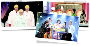 김보화·황기순 등 노장들 귀환…젊은층 위주 형식에서 탈피 비보연기 등 정통 코미디 도전 ‘식상하다’ 는 평도 맣아 지상파 방송3사의 코미디 전쟁이 본격적으로 벌어질 전망이다. 지난해말 한국방송 <개그콘서트>와 에스비에스 <웃찾사>의 뜨거운 접전으로 코미디의 새 부흥기를 맞았으나, 힘겹게 핀 꽃이 지는 모양새였다. 겉으로 드러난 바, 올 상반기 노예계약 파문과 폭력 사건이 주된 영향을 끼쳤다. 안으로는, 주로 젊은 세대를 끌어당겼던 휘발성 짙고 속도 빠른 ‘스탠딩 개그’의 한계 탓이기도 했다. 바로 이 지점에서 다시 일어서려는 시도가 펼쳐진다. 타깃을 젊은 세대 위주에서 텔레비전 주 시청층인 중장년층으로 넓히고, 이를 위해 과거 코미디 주역들을 끌어들였다. 장르도 스탠딩 개그 일색에서 벗어나려는 움직임이 활발하다. 복고로 중장년층 잡기=문화방송이 복고에 가장 적극적으로 나섰다. 지난 봄 시도한 공개 스탠딩 개그 <코미디쇼 웃으면 복이 와요>가 편성 시간의 불리함과 후발주자로서의 악조건을 넘지 못한 데 따른 것이다. 새 코미디 프로그램은 <웃는 데이(day)>. ‘퀴즈탐험 동물의 세계’ ‘라이브 요리쇼 간단합니다’ 등 주요 꼭지들은 공개홀이 아닌 비공개 녹화장에서 만들어진다. 프로그램의 숨통으로 신인 개그맨들이 꾸미는 공개 코미디 형식의 ‘11통 5반’도 마련했다. 방송시간도 본격 경쟁을 위해 수요일 밤 11시대로 바꿨다. 스탠딩 개그 붐을 일으킨 한국방송 <폭소클럽>도 본격 7080 프로그램으로 거듭났다. <개그콘서트>와 차별화하면서 동시에 중장년층 중심으로 일고 있는 복고 코미디에 대한 시청자들의 욕구를 반영하기 위해서다. 에스비에스 <웃찾사>도 이번 가을 개편에서 다시 재기를 위한 터를 잡은 뒤 이르면 올해 안으로 젊은 세대 위주의 획일화를 탈피해 다양한 꼭지 개발에 나선다는 계획이다. 코미디 주역들의 귀환=복고로의 회귀는 과거 코미디언들의 귀환으로 이어졌다. <웃는 데이>는 이경규·김국진 등을 코미디 무대에 올렸다. 조혜련·이윤석·정형돈도 여기에 가세했다. 개그맨으로 시작해 주로 엠시로 활동하던 이들이 다시 개그로 돌아온 셈이다. 이들은 주로 80~90년대식 바보 연기에 도전해 정통 코미디 연기를 선보이겠다는 각오다. <폭소클럽>도 김보화·황기순·이경래·배영만 등 과거 내로라하는 인기 코미디언들이 나온 데 이어, 고영수·김정렬·김상호·오재미 등도 출연을 앞두고 있다. 열쇳말은 신구의 조화. ‘최양락의 올드 보이’에서 후배 개그맨들과 함께 공개 코미디로 대결을 펼친다. 기존 <개그콘서트>의 인기 꼭지를 재연하는 방식이다. 근래에 휴식기에 들어갔던 컬투 정찬우·김태균도 ‘그때 그때 달라요 2’ 등을 들고 <웃찾사>로 돌아온다. 노예계약 파문 등에 이어 재충전의 시간을 가졌던 윤택·김형인 등도 새로 손질한 꼭지로 <웃찾사> 출연을 재개하고, 폭력 사건으로 쉬었던 김진철은 <폭소클럽> ‘피아노맨’으로 전격 복귀한다. 르네상스 다시 오려나=복고와 복귀에 대한 평가가 아직 그렇게 좋지만은 않다. <웃는 데이>의 경우, “유치하고 식상하다”는 악평이 대세다. <폭소클럽>의 과거 코미디언 출연 꼭지도 “어색하다”는 지적이 적지 않다. 최근의 스탠딩 개그에 익숙한 시청자들의 기호가 고정된 탓도 있겠지만, 단순한 과거의 재연에 그쳐 호응이 낮다는 평가가 더 적절해 보인다. 코미디의 복고가 큰 흐름이라 하더라도, 재창조의 과정이 필수적임을 알 수 있는 대목이다. 코미디 르네상스를 제대로 맞으려면 새로운 시대 변화에 발맞춰 코미디계의 전근대적 관행이 청산되고 장기적인 안목으로 다양한 장르가 선보여야 한다. 이와 함께 새로운 인재를 받아들여 아이디어를 재충전할 기회를 부여하는 선순환 구조가 마련돼야 할 것이다. 여기에 코미디를 바라보는 사회적 시각의 성숙함이 보태진다면 르네상스의 윤활유 구실을 할 것이다. 눈길가는 꼭지들 세대간 조화 노린 ‘최양락의 올드 보이’ 한글파괴 빗댄 ‘그때 그때 달라요 2’ 손범수도 출연하는 ‘퀴즈 탐험 동물의 세계’ 요즘 코미디 프로그램은 꼭지들이 수시로 들고 나는 특징이 있다. 이는 내부 경쟁으로 이어져 콘텐츠 질의 향상이라는 긍정적 구실을 한다. 가을개편을 맞아 지상파 3사 코미디 프로그램의 꼭지들도 새로 선보이고 있다. 볼만한 꼭지들은 주로 세대간의 조화가 특징이다. 한국방송 <폭소클럽>은 ‘최양락의 올드 보이’를 새로 마련했다. 옛 코미디언들의 통로 구실을 하는 중요한 꼭지다. 이들은 요즘 개그맨들과 팀을 꾸려 요즘 유행하는 인기 개그를 재연해 대결을 벌인다. 재연에 머물지 않고 과거 자신들의 유행어를 변형해 구사하기도 한다. 지난 방송에선 “노개그맨은 죽지 않는다. 다만 캐스팅 되지 않을 뿐이다”라는 말로 요즘 개그계를 패러디하기도 했다. 에스비에스 <웃찾사>의 전성기를 일군 주역 컬투는 6개월여만에 ‘그때 그때 달라요 2’를 들고 나왔다. ‘그때 그때 달라요 1’에서 지나친 영어 열풍을 가볍게 꼬집었다면, 이번엔 한글 파괴 현상에 대한 패러디로 발전했다. 읽는 대로 써서 보내는 휴대폰 문자메