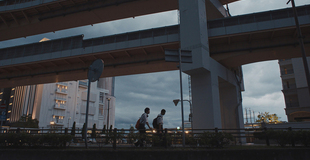 <해피엔드>가 희구하는 세계는 혼돈과 충돌과 균열과 적대가 타협되고 조율된 지평이다. 지진이 발생하는 순간을 재현하는 방식도 그 예가 될 만하다. 학교 안에서 유타와 코우가 흔들림을 감지하고 책상 밑으로 들어가 대피하는 긴박한 모습이 이어지는 동안, 세계는 불시에 침묵에 잠긴다. 감독은 행여 지진을 경험한 이들의 트라우마를 건드릴지 모른다는 염려에 사운드를 배제했다고 말하지만 그의 바람과 별개로 소리를 지운 일촉즉발의 움직임은 그 순간의 불안, 동요, 위험이 제거된 이미지로, 왠지 꿈결처럼 느린 속도로 펼쳐지는 듯한 착각 속에 전시된다. 적어도 이미지의 차원에서 이 장면의 강도는 바람이 솔솔 들어오는 거실에서 유타가 잠에서 깨는 아침의 잔잔한 공기, 그곳에서 밤새 널브러져 자던 친구들이 하나씩 일어나는 자연스러운 분위기와 크게 달라 보이지 않는다. <해피엔드> 는 현실의 폭력성과 불안전성과 혼란이 자신의 토대라고 거듭 환기하지만 이 영화의 시선, 리듬, 운동성, 보폭 등은 그 울퉁불퉁한 상태를 순화하는 과정에 복무한다. 시시각각 어두운 도심을 부유하는 “긴급사태조항 발령” 문구나 고층빌딩에 비친 총리의 얼굴은 근미래의 디스토피아적인 분위기를 조성하려는 텅 빈 이미지의 기술이며, 폭력은 그저 신기루처럼 다뤄진다. 그것은 신기루일 뿐인데, 이 영화의 청춘들은 무엇과 싸우고 있는 것일까. 그것은 신기루일 뿐이므로, 밤거리를 오가는 청춘들의 풍경에는 한적하고 나른한 낭만이 깃든다.